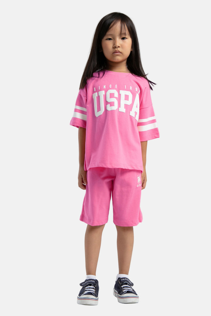 U.S. Polo Assn. pink komplet za djevojčice sa bijelim logom USPA