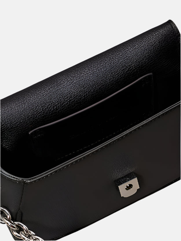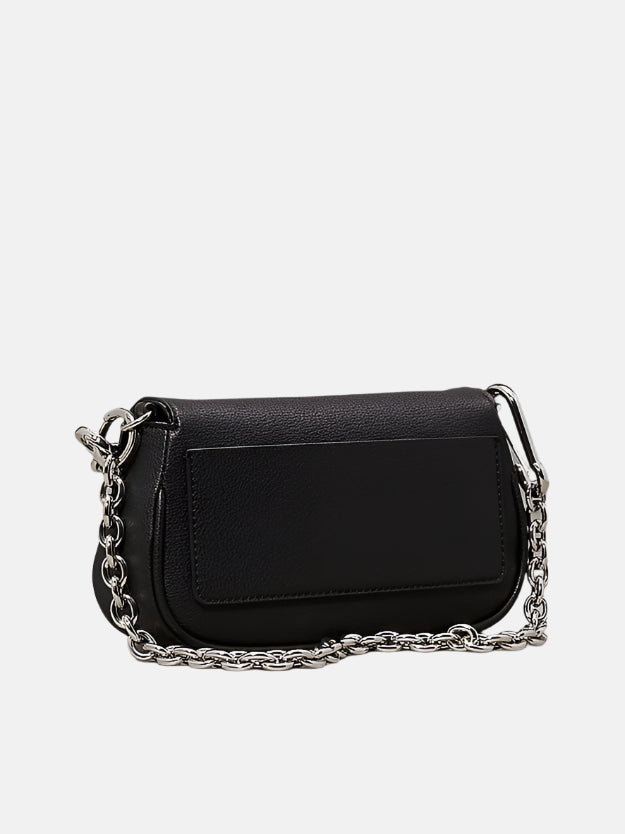 Elegantna torba u klasičnoj crnoj boji idealan je izbor za sve prilike, pružajući savršen spoj stila i funkcionalnosti. Karakteriše je glatka tekstura koja ističe njenu sofisticiranost. Srebrni lanac kao ručka dodaje moderan i trendi detalj, a na prednjoj strani se nalazi suptilan logo koji daje dodatnu dozu luksuza. Ova torba savršeno se uklapa u razne kombinacije, bilo da se radi o večernjim izlascima ili svakodnevnim obavezama, lako se može kombinovati s različitim odjevnim predmetima i stilovima, poput haljina, traperica ili poslovnih kostima.