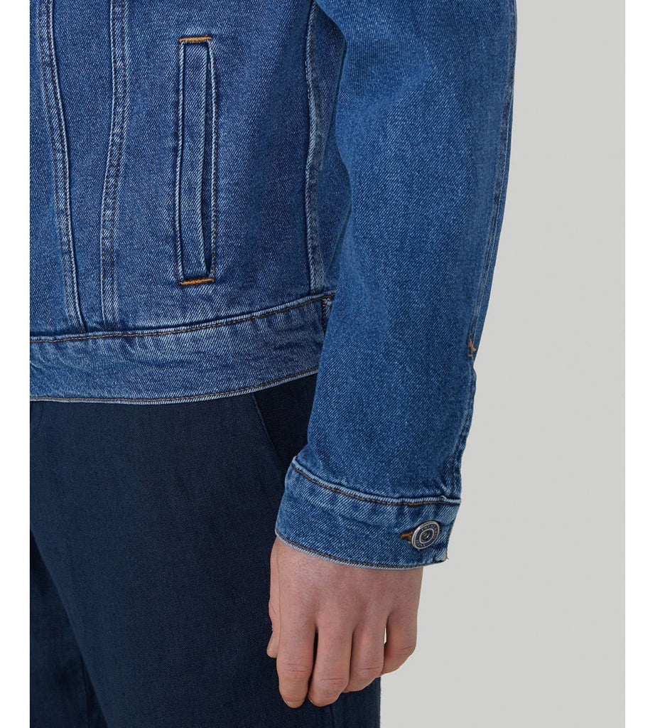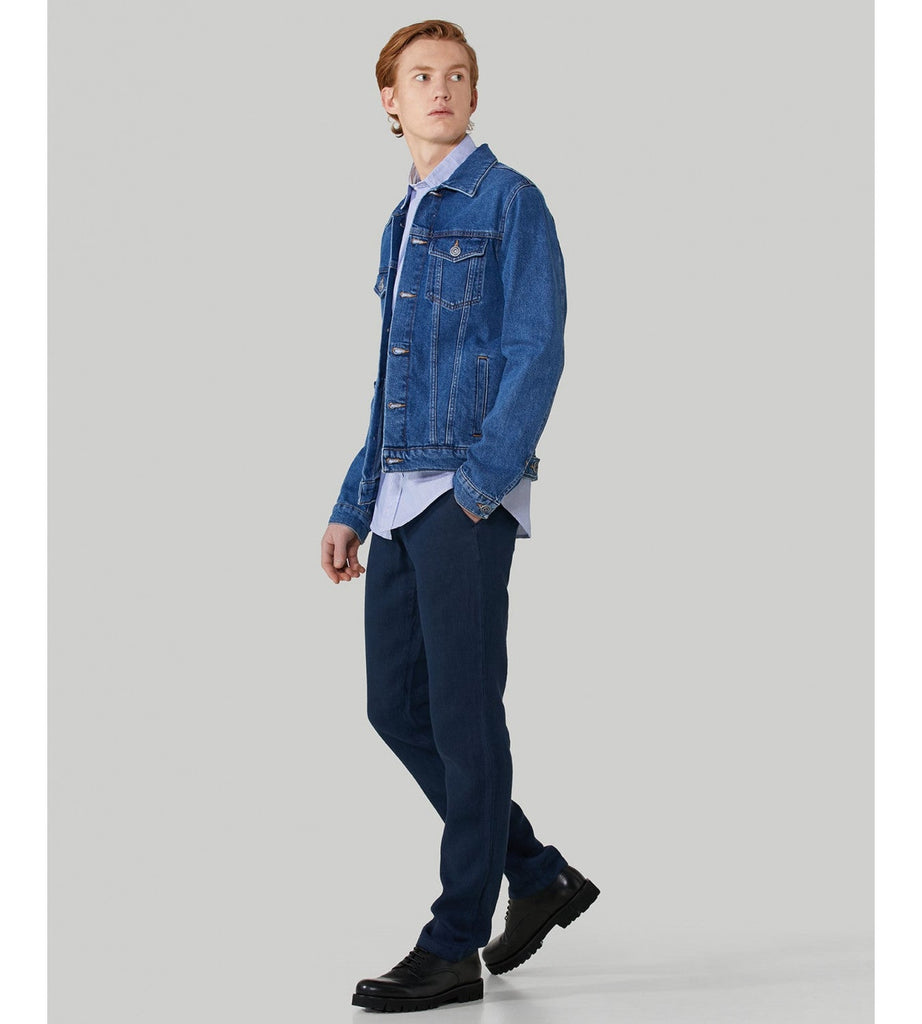 Klasična muška teksas jakna u tradicionalnoj plavoj boji predstavlja bezvremenski dodatak svakom ormaru. Karakteriše je klasični kroj sa dugmićima na prednjoj strani i praktičnim džepovima na grudima, kao i sa strane, koji su idealni za nošenje sitnica. Dugi rukavi završavaju sa dugmićima na manžetnama, omogućavajući prilagođavanje širine. Jakna je izrađena od čvrstog i izdržljivog denim materijala, što je čini savršenim izborom za svakodnevno nošenje. Može se kombinovati sa različitim stilovima, bilo da je riječ o ležernom izgledu sa majicom i farmerkama ili nešto formalnijem izdanju sa košuljom i chino pantalonama.