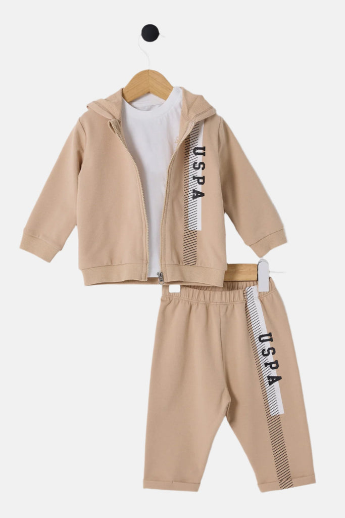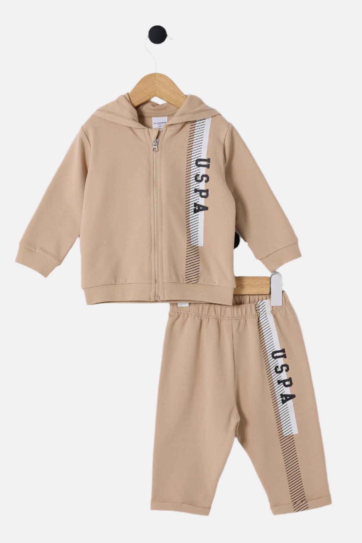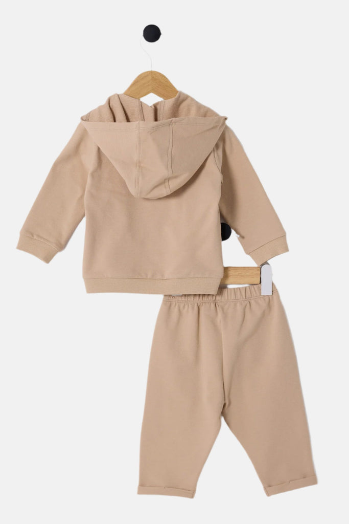 Ovaj komplet u nijansi bež pruža savršen spoj udobnosti i stila za svakodnevne aktivnosti. Jakna sa kapuljačom ima trendy dizajn i praktično zatvaranje na patentni zatvarač, dok su gaćice sa elastičnim pojasom osiguravaju udobno nošenje. Na prednjem dijelu jakne istaknuta je upečatljiva grafika koja dodaje modernu notu cjelokupnom izgledu. Ovaj komplet je idealan za ležerne izlaske, igru ili opuštanje kod kuće, a lako se kombinira s različitim obućama i modnim dodacima. Savršen je izbor za male modne entuzijaste koji žele izgledati stylish, a istovremeno se osjećati udobno.