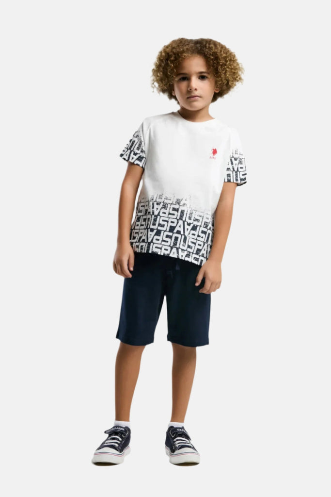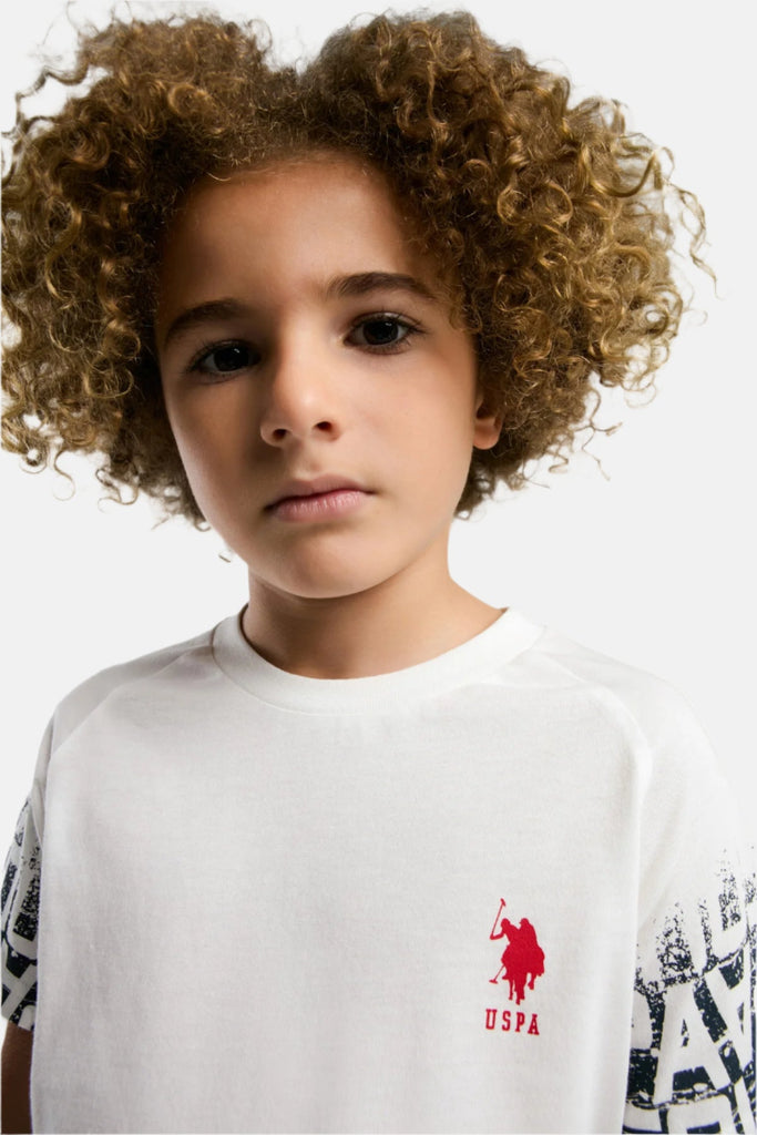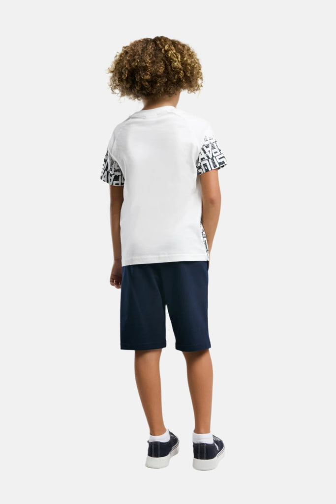 Ova moderna majica za dječake dolazi u svjetlu bijeloj boji s dinamičnim printom koji se postepeno smanjuje prema donjem dijelu, stvarajući efektan vizualni dojam. Izrađena je od kvalitetnog, mekog materijala koji osigurava udobnost tokom cijelog dana, što je čini idealnom za svakodnevno nošenje. Na lijevoj strani nalazi se suptilno logo oznaka brenda, što dodatno naglašava njen sportski karakter. Ova majica savršeno se može kombinovati s kratkim hlačama ili trapericama, savršena je za igre napolju ili izlazak s prijateljima, pružajući mladima slobodu kretanja i stil.