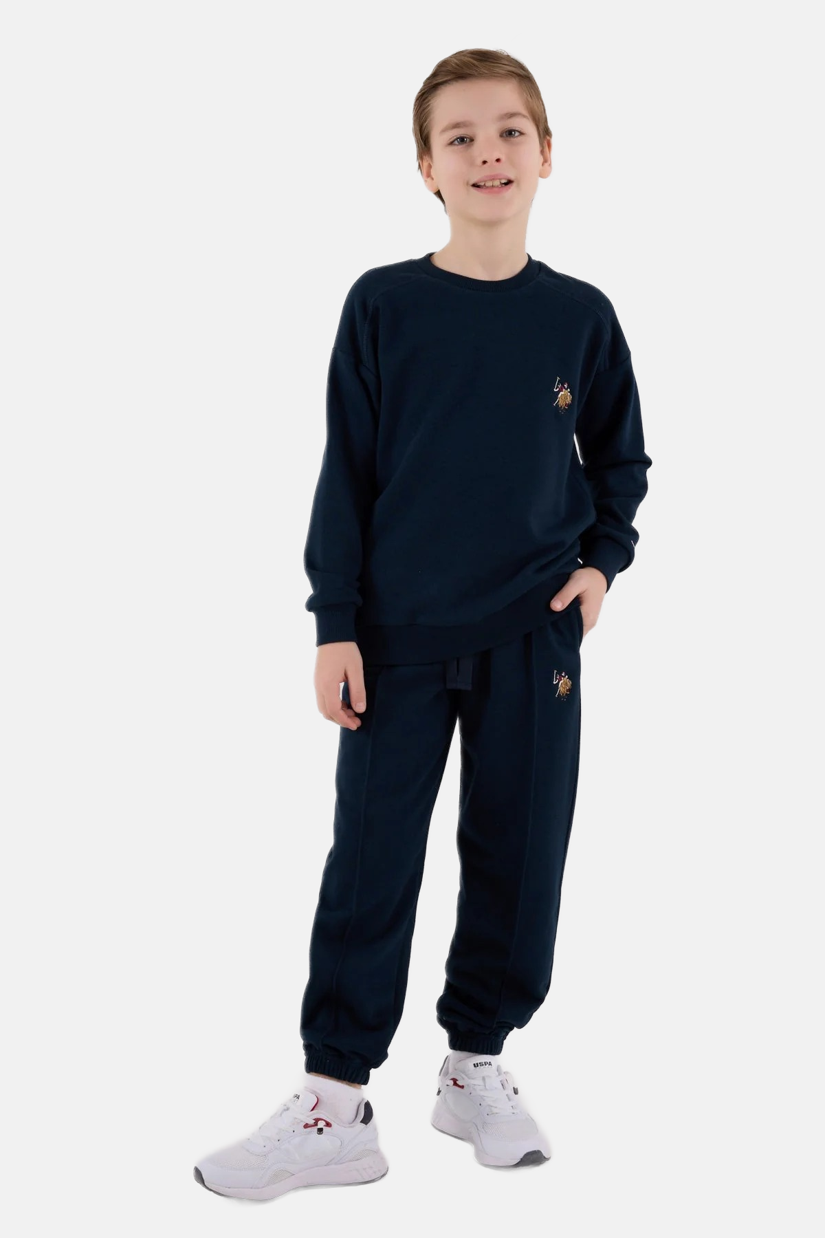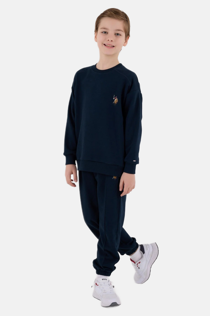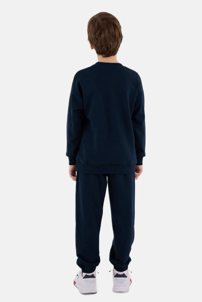 Ova elegantna trenerka u tamnoplavoj boji pruža udobnost i stil za svakodnevne aktivnosti. Izrađena je od mekog materijala koji osigurava prijatno nošenje tokom cijelog dana. Trenerka se sastoji od lagane dukserice i slim-fit pantalona, a karakterišu je praktični detalji poput elastičnih manžeta na rukavima i nogavicama koji osiguravaju savršeno pristajanje. Na prednjem dijelu dukserice nalazi se diskretna aplikacija koja dodaje dašak modernog izgleda. Ova trenerka je savršen izbor za ležerne izlaske, treninge ili boravak kod kuće, te se može lako kombinovati sa različitim sportskim ili casual obućom.