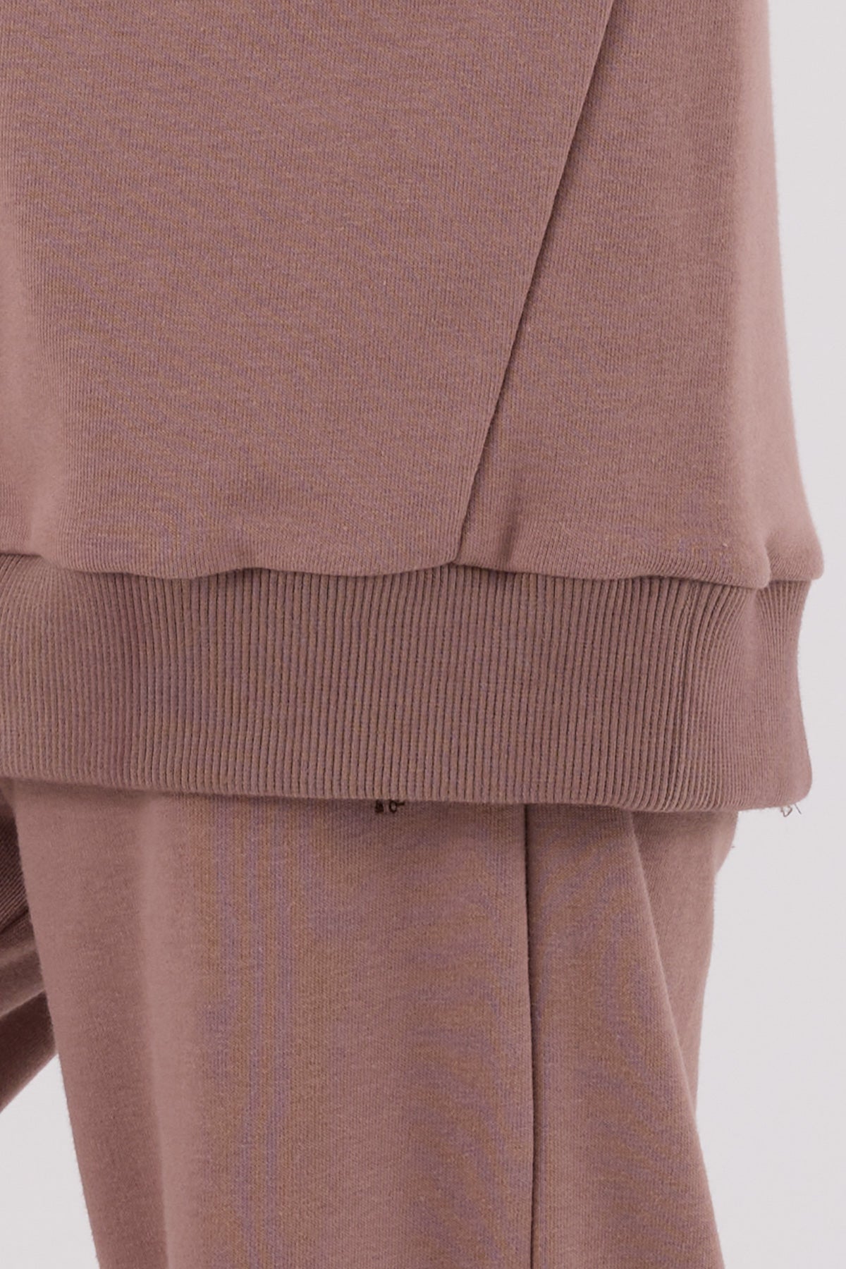 Šarmantna trenerka u nježnoj pastelno smeđoj boji pruža udobnost i stil tokom svakodnevnih aktivnosti. Karakterišu je mekani materijali koji osiguravaju prijatno nošenje i slobodu pokreta. Riblja tekstura i discretan logo na prednjem dijelu dodaju moderni pečat. Ova trenerka je savršen izbor za ležerne kombinacije, bilo da se radi o vježbanju, izlasku ili opuštenom danu kod kuće, a može se lako kombinovati sa različitim sportskim ili casual obućom.