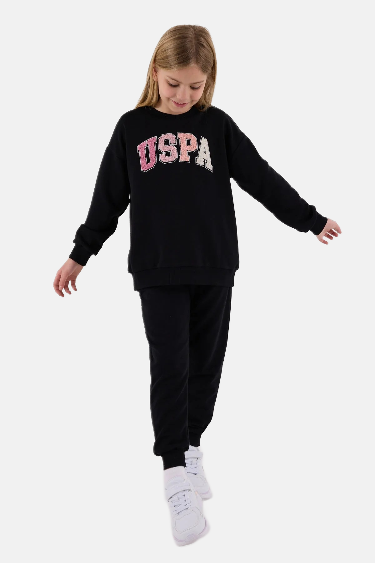 U.S. Polo Assn. crna trenerka za djevojčice s natpisom