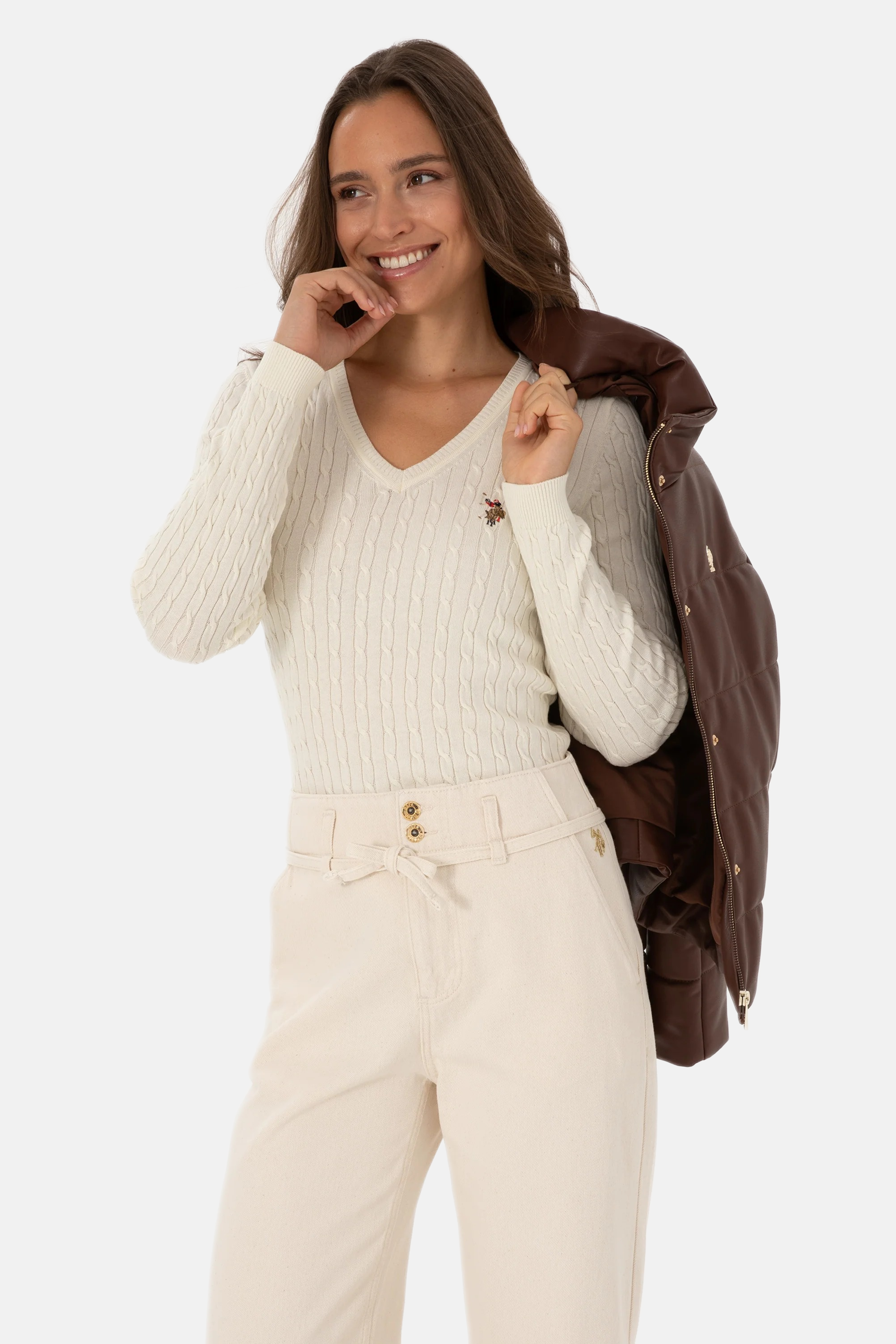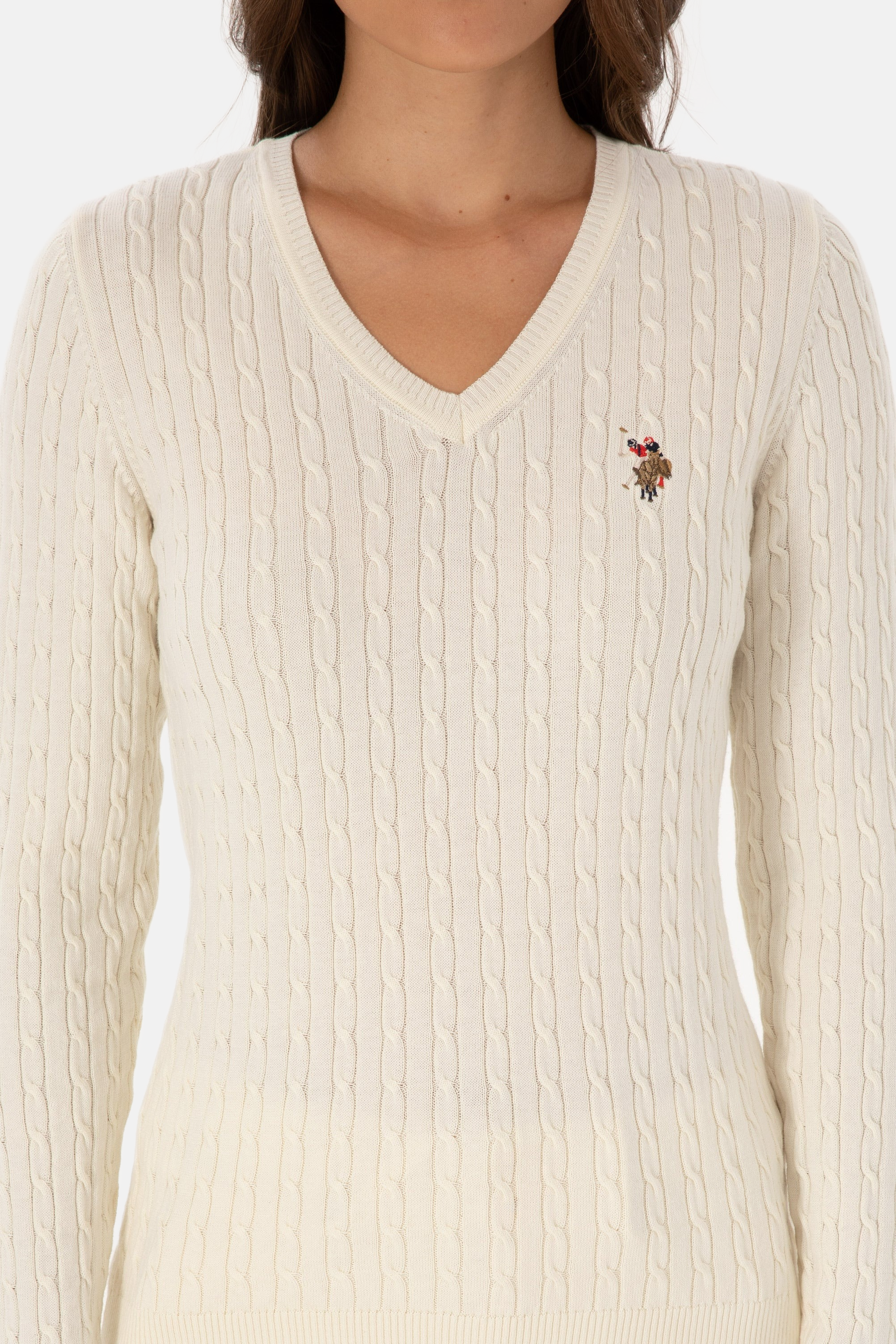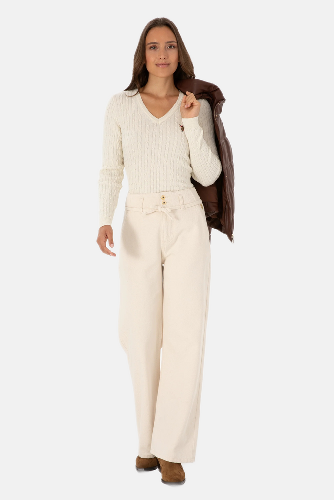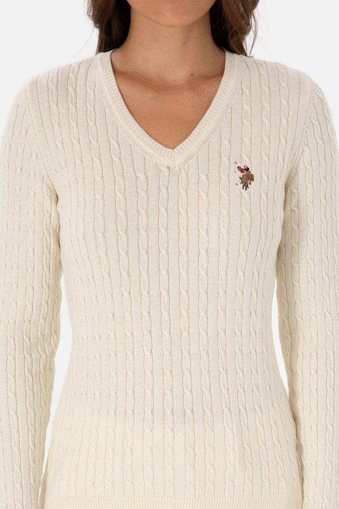 U.S. Polo Assn. bijeli ženski džemper na V izrez